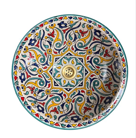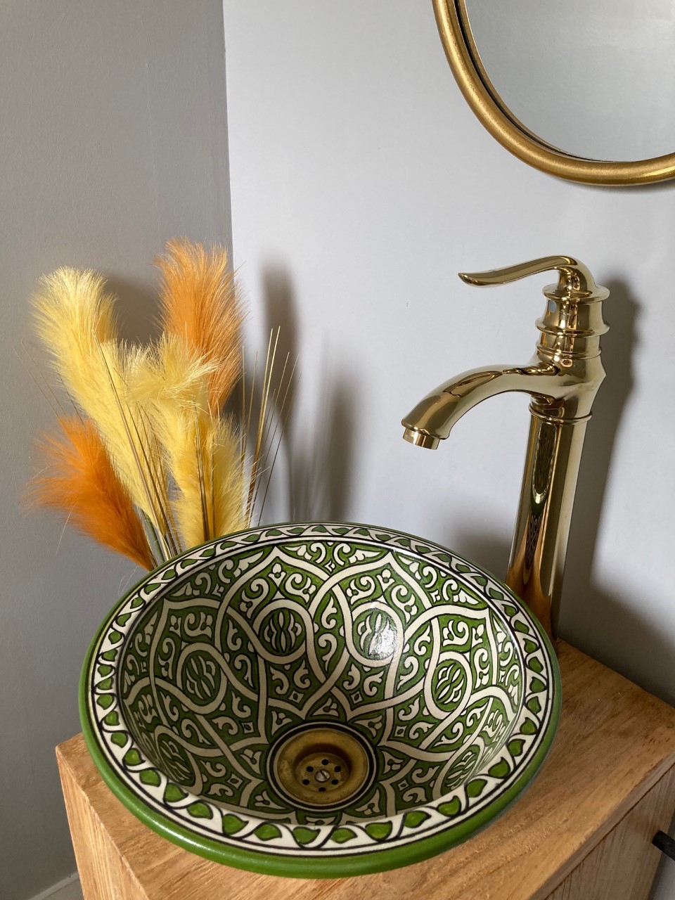 Façonnées une à une au Maroc par des artisans céramistes, ces vasques sont des pièces uniques, où chaque motif raconte une histoire.