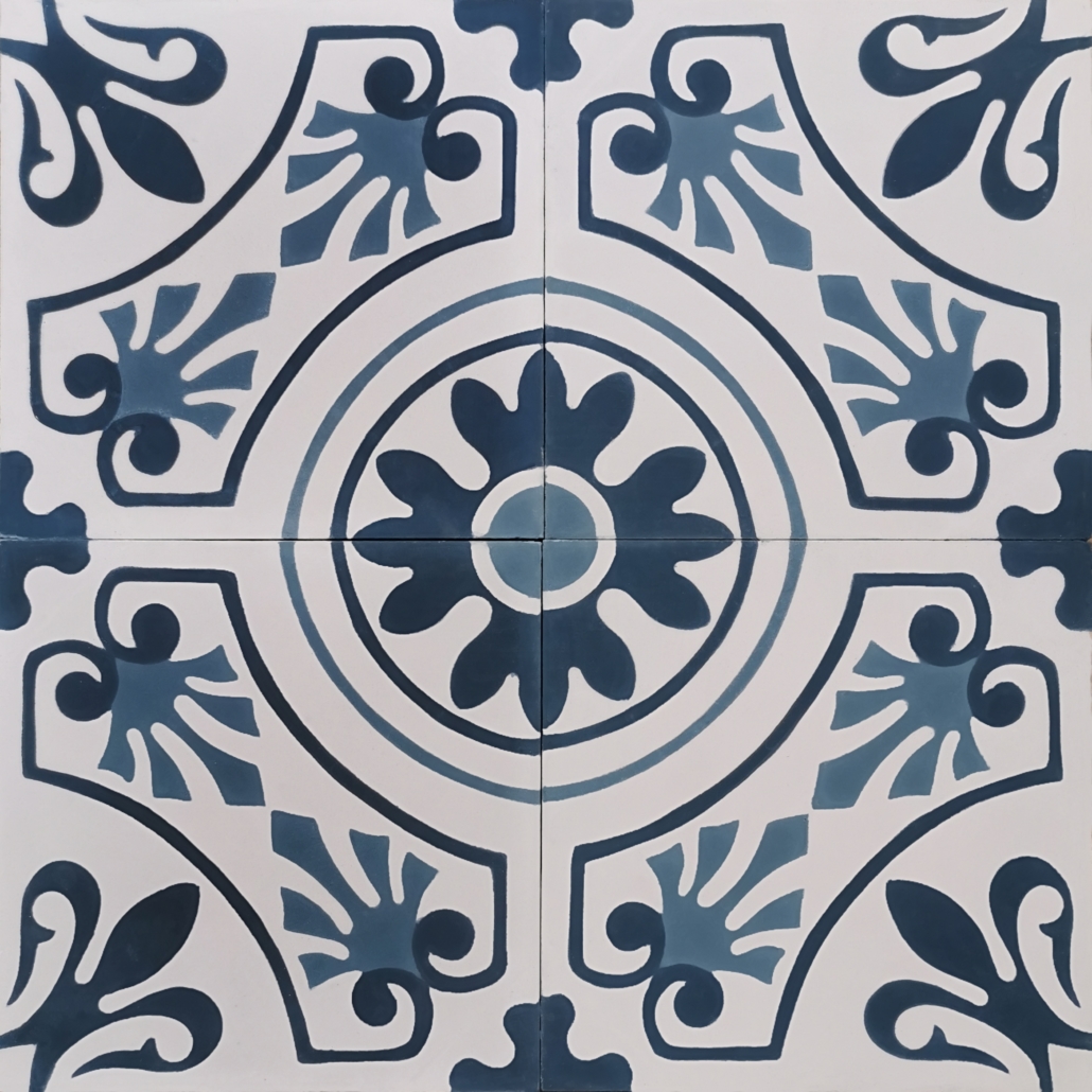 Le carreau de ciment Lisbonne bleu 4 avec ses motifs floraux sera idéale pour apporter de la douceur et du romantisme à son intérieur. Ses motifs donneront de l’originalité à votre pièce. Il sera parfait dans une entrée, un salon, ou une salle de bain.